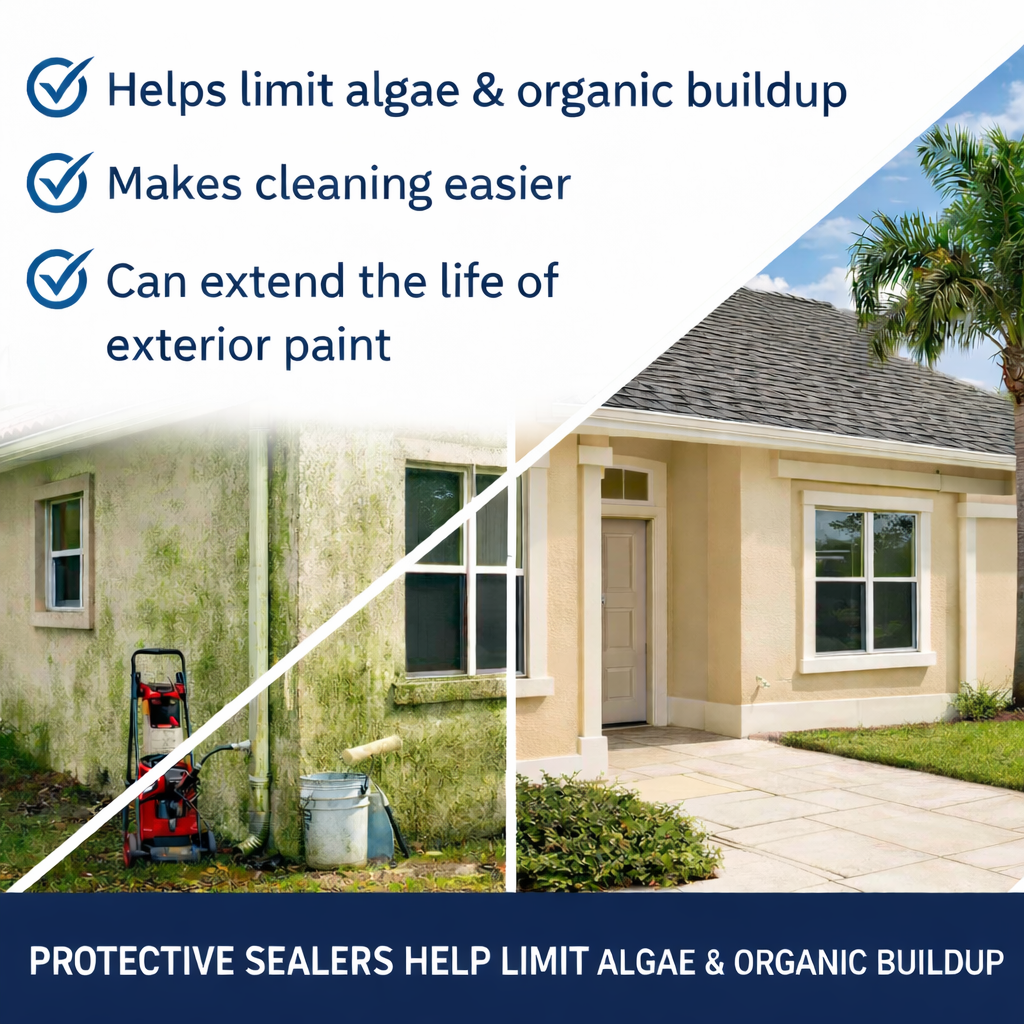 Helps limit algae & organic buildup, makes cleaning easier, and can extend the life of exterior paint.