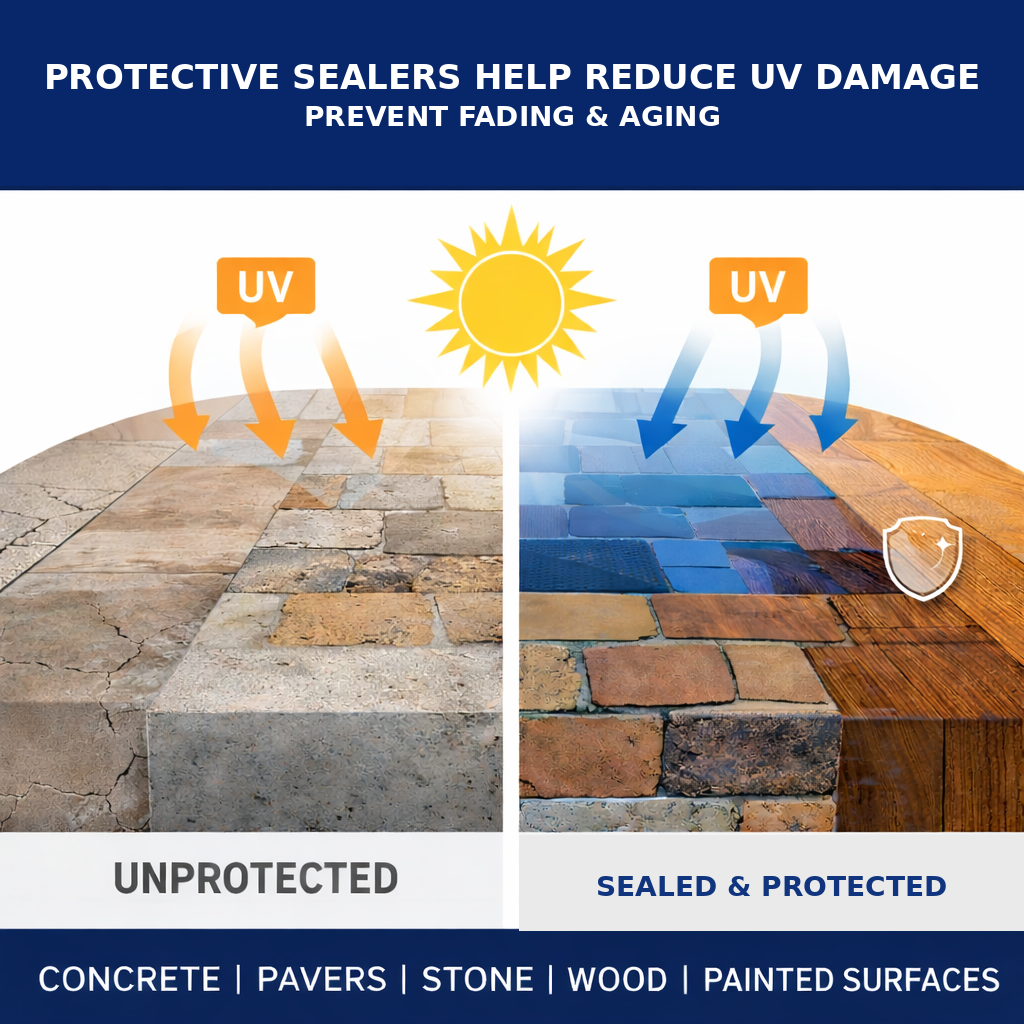 Why seal your pavers? Helps reduce future cleaning. repel water & staining, and protect surface appearance. Clean to restore curb appeal—then choose the protection option that fits your look, budget, and permeability needs.