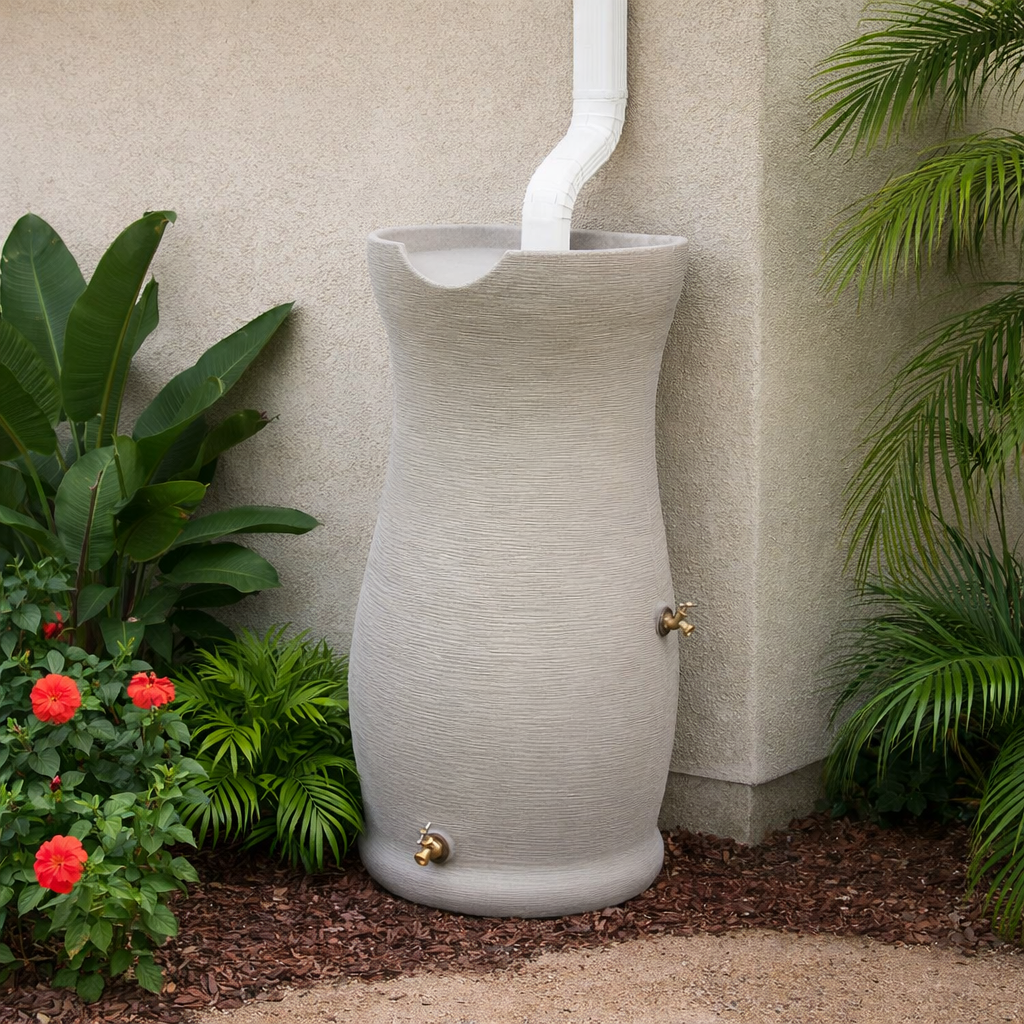 Turn runoff into a resource—store rainwater and reduce overflow near foundations and beds.